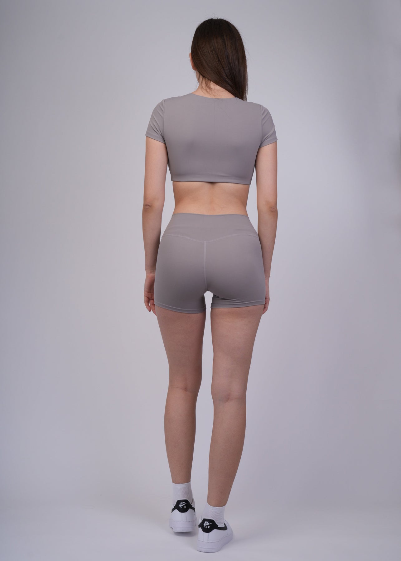 Meet your new go-to set for every move you make. This two-piece activewear set features a sleek crop top with a hidden, removable bra for customizable support, paired with high-waisted shorts that stay put—no rolling, no slipping.